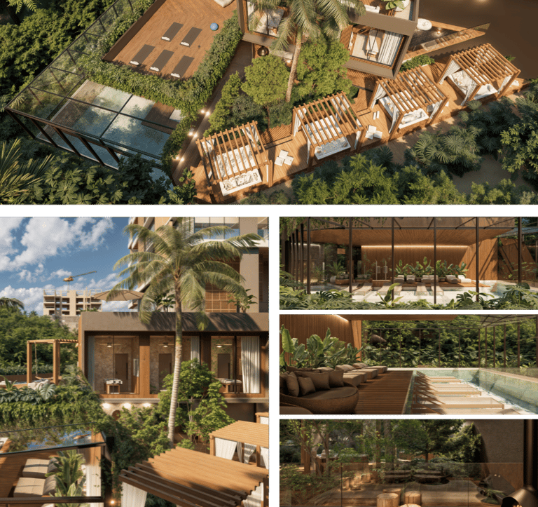 O projeto valoriza experiências sensoriais e momentos de contemplação, unindo sofisticação, silêncio e conforto em ambientes que promovem relaxamento, saúde e equilíbrio. Aqui, viver o lazer é se permitir respirar fundo e sentir a natureza como parte da rotina.